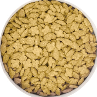 小麦粉、小麦ふすま、ホミニーフィード、大麦糠、アルファルファミール、脱脂大豆、コーングルテンフィード、チキンミール、ブドウ糖、菜種・大豆油、ビール酵母、ゼオライト、フィッシュミール、ひまわり種子、チーズパウダー、オリゴ糖、殺菌処理乳酸菌、ミネラル類(炭酸カルシウム、食塩、第二リン酸カルシウム、硫酸亜鉛、硫酸銅、ヨウ素酸カルシウム)、アミノ酸類(塩酸L-リジン、DL-メチオニン)、ビタミン類(ナイアシン、E、B1、B2、A、B6、葉酸、パントテン酸、K、B12、D3)、香料(ピーナッツオイル)